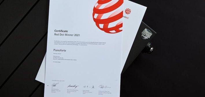 Радиаторы коллекции Pianoforte от производителя Royal Thermo (бренд ТПХ «Русклимат»), удостоились самой престижной награды в области дизайна Red Dot Design Award в номинации Product Design. Теперь они занимают почетное место в музее Red Dot Design среди таких признанных лидеров промышленного дизайна, как SMEG, Miele, Ferrari, Porsche, Apple и многих других.