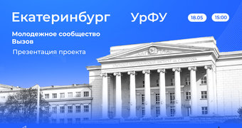 В Уральском Федеральном университете 18 мая в 15:00 состоится презентация молодежного сообщества «ВЫЗОВ». Мероприятие откроет и. о. ректора УрФУ Сергей Кортов. Специальными гостями станут председатель наблюдательного совета УрФУ Дмитрий Пумпянский, генеральный директор ООО УК «УЗТМ-КАРТЭКС» Ян Центер, исполнительный вице-президент ПАО «Газпромбанк» Андрей Серов.
