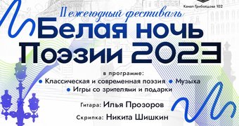 В Санкт-Петербурге пройдет II ежегодный поэтический фестиваль «Белая ночь поэзии». Ее организатором является лирико-драматический театр «НЕОЛИРА». Мероприятие состоится 1 июля 2023 года. С 16.00 поэты будут читать гостям самые известные стихи российских и зарубежных авторов.