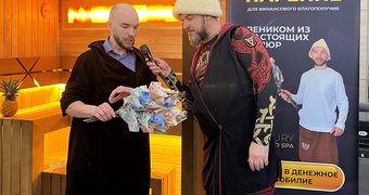 Уникальную услугу парения веником из настоящих денег запустила компания, которая занимается постройкой банных комплексов. Услугу презентовали людям на выставке загородной недвижимости в Петербурге.