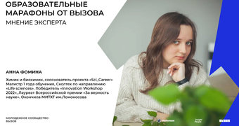 Так сказала химик и биохимик, сооснователь проекта «Sci_Career», член проекта «Химия — просто» Анна Фомина, комментируя свое участие в «Креативной лаборатории» молодежного сообщества ВЫЗОВ.