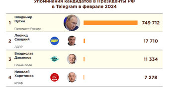Аналитический центр «Г.У.Р.У.» составил рейтинг упоминаний кандидатов в президенты в Telegram. Авторы использовали данные сервиса TgStat и поисковой нейросети собственной разработки, которая фиксирует все публикации с упоминанием ключевых публичных политиков в русскоязычных Telegram-каналах.
