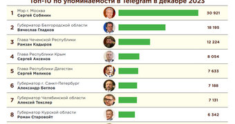 Первое информационное телеграм-агентство «Телестрим» и аналитический центр «Г.У.Р.У.» презентовали свежее исследование «Индекс Telegram. Рейтинг эффективности публичных политиков через призму Telegram. Итоги года».