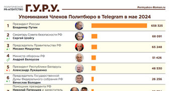 Аналитический центр «Г.У.Р.У.» презентовал свежее исследование «Индекс Telegram. Рейтинг эффективности публичных политиков через призму Telegram по итогам мая».