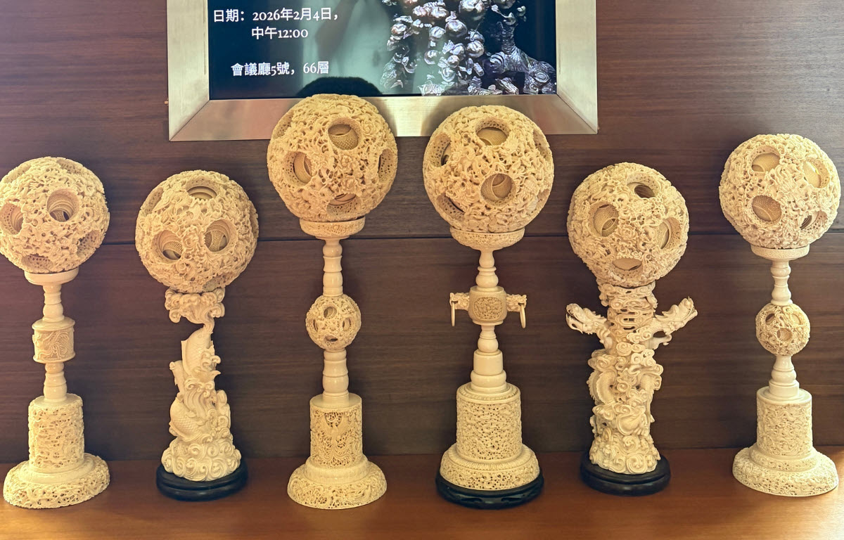 Особое место занимает техника «шаров призрачной работы» — многослойных сфер, вырезанных из цельного куска бивня. Каждый слой материала внутри такого шара подвижен, а сама конструкция требует ювелирной точности. Легендарная династия мастеров Вэн на протяжении пяти поколений доводила эту технику до совершенства: от 11 слоев у основателя Вэн Учжана до рекордных 57 слоев у Вэн Яосяна. Толщина некоторых элементов не превышает долей миллиметра, что делает такие работы практически недостижимыми для повторения.