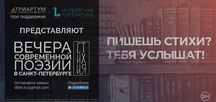 Паблик «Libris | Интересная Литература» и продюсерский центр «Триартум» приглашают поэтов в новый творческий проект «СТИХИ.Я» в Санкт-Петербурге