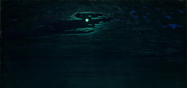 Раздел выставки, озаглавленный «Тайна ночи», объединил самые загадочные работы мастера, которые принесли ему громкую славу. Интересно сравнить знаменитое полотно «Ночь на Днепре», приобретенное великим князем Константином Романовым, и авторские повторения, варьирующие едва заметные нюансы композиции. Обилие широких горизонталей создает иллюзию глубины пространства. Фантастический эффект лунного света, переданный оттенками зеленого, усилен пастозной фактурой мазков, в которых свет, отражаясь под разными углами, мерцает, как в драгоценной мозаике. Световая вертикаль, заданная слабо освещенной развилкой дорог, лунной дорожкой на реке и сияющей в темном небе луной, — мотив, которому художник позволил разные варианты развития. Более извилистая линия вертикали создает эффект тихого движения вверх, в небо, напоминая слегка курящуюся струйку дыма. Более четкая вертикаль, как в работе 1880 года, останавливает, замедляет это движение, тем самым превращая натурный сюжет во вневременный символ и обобщенную идею.