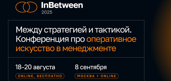 В Москве состоится первая в России конференция «InBetween» про оперативное искусство в менеджменте. Между стратегией и тактикой. Событие о том, как эффективно действовать на самом сложном уровне управления: между стратегическими целями от топ-менеджмента и ежедневной тактической рутиной команд.