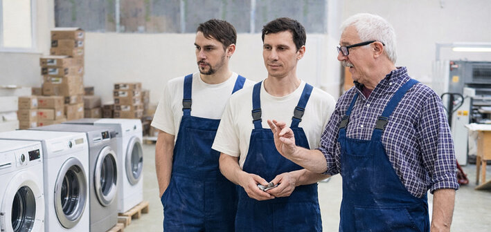 Сервисный центр «Дельта Мастер» завершил обновлённую программу переобучения по ремонту стиральных машин и электронных модулей управления для двух ведущих мастеров — Андрея Караборчева и Игоря Припадчева. Объём программы составил 82 академических часа, более 70% из которых пришлось на практику: работу с реальными платами, стендами и стиральными машинами разных брендов.