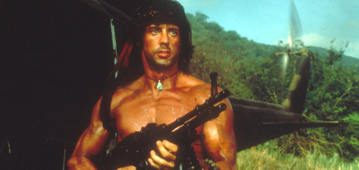 На протяжении восьмидесятых тогда еще малоизвестный Сильвестр Сталлоне сам пишет сценарии, основываясь на одноименной книге Дэвида Моррелла, и создает на экране образ Джона Рэмбо - супергероя вьетнамской войны, который всегда побеждает. Рэмбо – бывший солдат специального элитного подразделения, специалист по оружию, технике, стрельбе, а также по выживанию, плюс ко всему умеет управлять всевозможными видами транспорта. Рэмбо – совершенное, мощное оружие в тылу врага. Неспособный адаптироваться к мирной жизни, Рэмбо вынужден на протяжении всей жизни воевать, бороться за свое право жить. Эта роль даст Сталлоне сверхпопулярность на долгие годы вперед. В свое время фильм привлек внимание президента США Рональда Рейгана, который похвалил Сильвестра Сталлоне за создание портрета Рэмбо как символа американской армии.Плюсом фильмов про Рэмбо (а вышло их пока четыре) является то, что на прошествии почти 30 лет фильм по-прежнему свежо смотрится, и Сталлоне очень хорошо смотрится на экране. Сейчас катастрофически не хватает подобных бесстрашных героев, которые могут все, готовы до самопожертвования воевать за идею, бороться до последнего. И если первый фильм про Рэмбо («Первая кровь») полон драматизма и реалистичности, то последующие части скорее сделаны ради спецэффектов и показухи. Во второй и третьей части сюжет построен на политическом аспекте – холодной войне между СССР и США. Рэмбо борется против русских, которых американцы выставляют в качестве захватчиков Вьетнама.