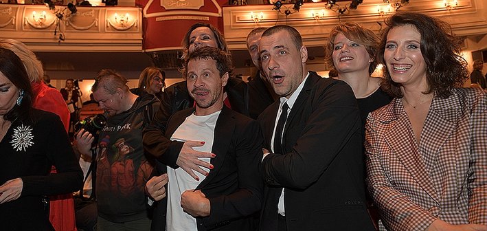 Получая награду за лучшую мужскую роль, Евгений Цыганов ("Человек, который удивил всех") сказал "спасибо" Юлии Снигирь за то, что уговорила его сниматься в этой роли.