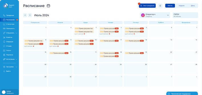 Встроенный календарь поддерживает функцию drag-and-drop, которая упрощает и ускоряет работу с ним и обеспечивает возможность просмотра записей на день, неделю или месяц. А автоматическая отправка сообщений о записи направит напоминание в WhatsApp или через SMS. Также система позволяет отслеживать качество входящих обращений с помощью записи звонков, комментариев к ним и мониторинга отзывов.