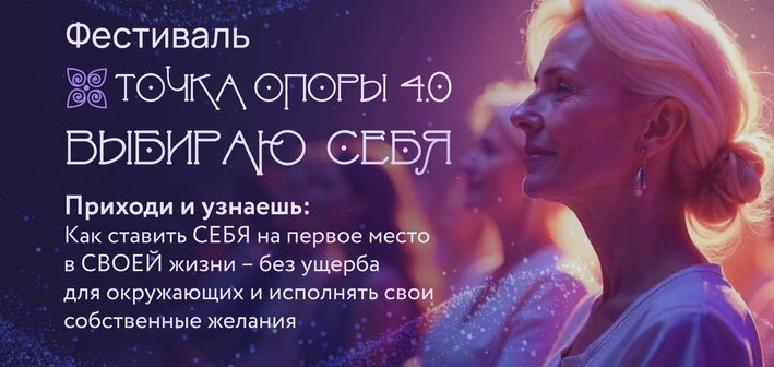 6 апреля 2025 года в Москве состоится 4-ый фестиваль душевных практик «Точка Опоры 4.0: Выбираю себя». Уникальное мероприятие станет пространством для тех, кто стремится к переменам, саморазвитию и осознанному выбору своего жизненного пути.