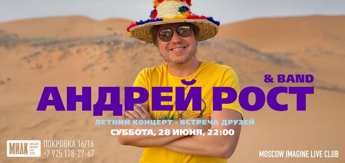 28 июня, в субботу, в легендарном MILK (бывшем Imagine Live Club) на Покровке состоится летний концерт Андрея Роста и его звездных друзей.