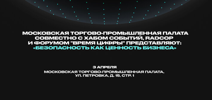 3 апреля на площадке Московской торгово-промышленной палаты состоится конференция «Безопасность как ценность бизнеса». Инициаторами выступают МТПП, Хаб событий, РАД КОП при участии форума «Время цифры», что задает мероприятию широкий отраслевой контекст и актуальную повестку.