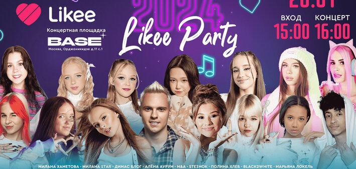 Официальными партнерами выступили телеканалы МУЗ-ТВ и Солнце. Билеты можно приобрести по ссылке: https://base-club.com/events/LIKEE-PARTY/