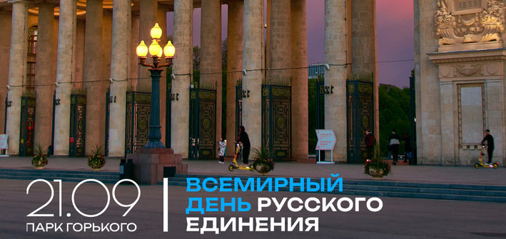 Всемирный день русского единения пройдет в Москве в Парке Горького по адресу: ул. Крымский Вал, 9. Начало мероприятия в 14:00. Вход свободный.