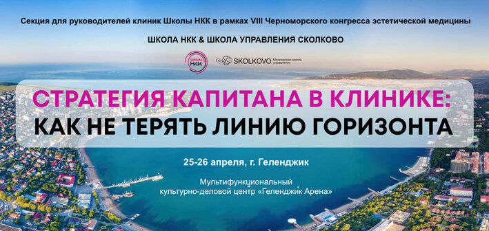 Школа НКК совместно со Школой управления Сколково организуют секцию для собственников клиник эстетической медицины в рамках VIII Черноморского конгресса. Главная тема — «Стратегия капитана в клинике: как не терять линию горизонта». Это ответ на главный запрос 2026 года: как управлять бизнесом, когда рынок штормит, а старые методы перестают работать.