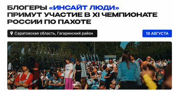 18 августа резиденты продюсерского центра «Инсайт Люди», входящего в «Газпром-Медиа Холдинг», выступят на XI Чемпионате России по пахоте в Саратове. Блогеры, экоактивисты Кирилл и Наталья Ковалевы примут участие в круглом столе «АПК-апгрейд. Возможно ли совмещать блог и работу в поле?» и проведут мастер-класс по созданию качественного и популярного сельскохозяйственного контента.