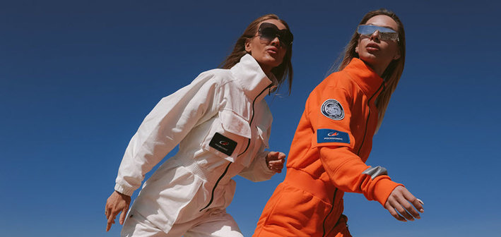 В результате коллаборации DNK Russia и госкорпорацией Роскосмос появились не только, традиционные предметы гардероба — спортивные костюмы, футболки и свитшоты, но и платья с сублимированным принтом, поло, комбинезон, мега оверсайз куртка, космический баул и космический бушлат.