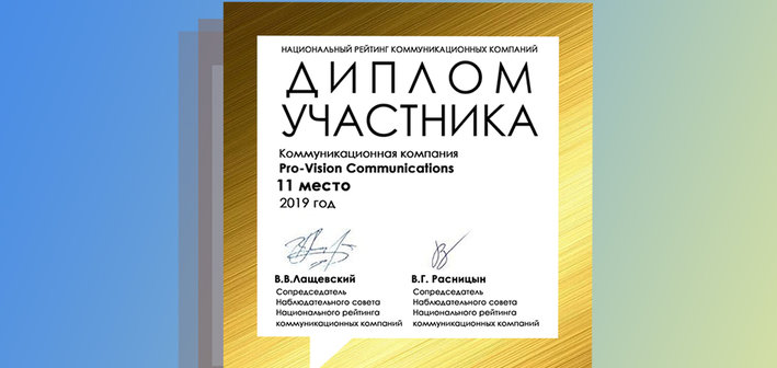 Агентство Pro-Vision – в числе лидеров Национального рейтинга коммуникационных компаний