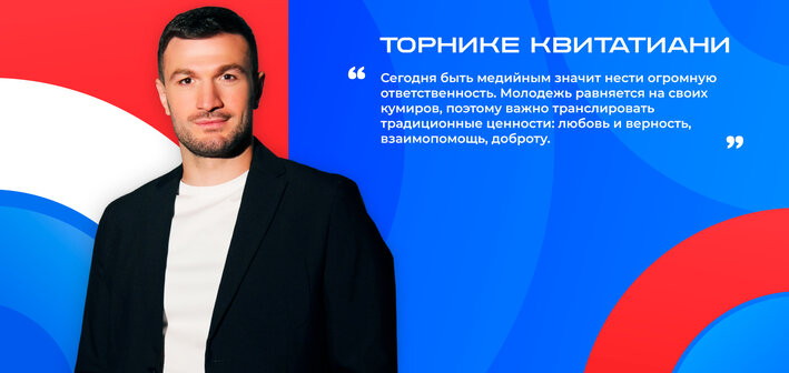 Торнике Квитатиани — певец грузинского происхождения, актер. Он обладатель кубка Европы и член сборной России по вольной борьбе. Последние несколько лет артист активно занимается актерской и музыкальной карьерой: принял участие в шоу «Голос» на Первом канале, «Вызов» и «Новые звезды в Африке» на ТНТ, снялся в фильмах «На Париж» и «Добро пожаловать в семью», а также сам написал и выпустил песню «Молода».