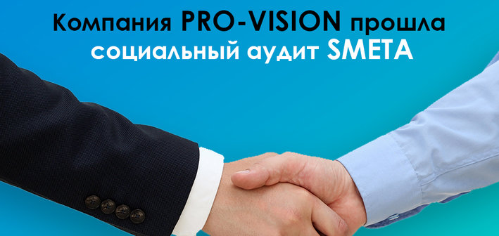 03 декабря 2018 г. Агентство маркетинговых коммуникаций Pro-Vision Communications успешно прошло аудит социальной ответственности по критериям SMETA. По итогам сертификации компания признана надежным бизнес-партнером, соблюдающим международные стандарты социальной ответственности, и зарегистрирована на платформе SEDEX.