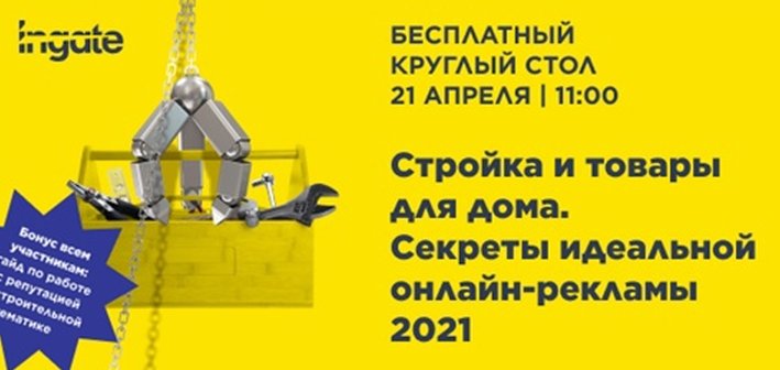 Все желающие могут зарегистрироваться на вебинар «Стройка и товары для дома. Секреты идеальной онлайн-рекламы 2021», и узнать о ключевых трендах в маркетинговой отрасли, познакомиться с самыми эффективными digital инструментами привлечения клиентов и получить готовое отраслевое решение от профессионалов с опытом в сфере DIY, которое позволит решить все задачи в online.