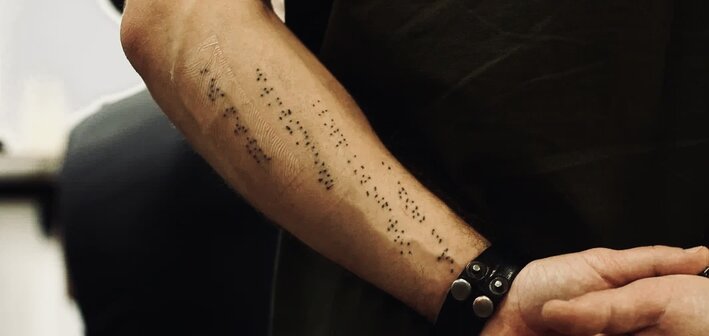 «Слепой Бью» – серия сессий единственного в мире незрячего тату-мастера Игоря Михайлова. Используя алфавит Брайля и тактильную 3D-модель, он создает очень личные работы, смысл которых без дополнительных уточнений понятен только заказчику и его мастеру. Первый открытый сеанс «Слепого Бью» прошел в ноябре в пространстве «Татстудия» и собрал журналистов и инфлюенсеров, многие из которых выступили моделями незрячего мастера и набили тату по Брайлю.