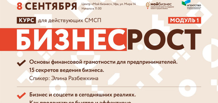 6 сентября стартует курс «Бизнес старт» при поддержке центра «Мой бизнес» Республики Башкортостан и Школы финансовой грамотности. В рамках мероприятия руководитель региональной студии продюсерского центра Insight People в Уфе Ирина Шоцкая выступит в тематической сессии «Бизнес и соцсети в сегодняшних реалиях. Как продвигаться быстро и эффективно».