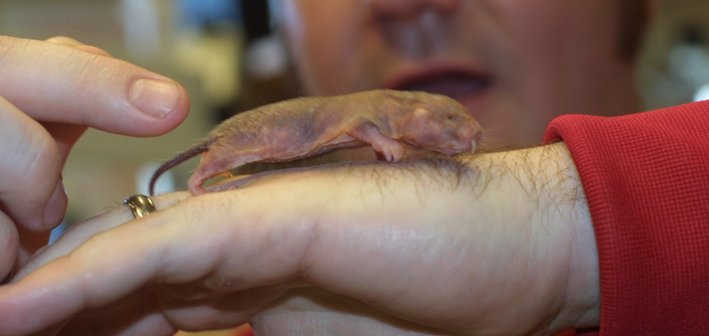 Голый землекоп (Heterocephalus glaber) — уникальное млекопитающее, обладающее множеством удивительных свойств. Этот безволосый подземный грызун размером с мышь и весом 30-50 граммов обитает в восточной Африке. В 1970-е годы ученые обнаружили, что эти существа живут необычайно долго для своего размера, в десятки раз выше нормы, и не подвержены раковым заболеваниям. Кроме того, землекопы практически не чувствуют боли и не реагируют на раздражение кожи при соприкосновении с едкими кислотами.