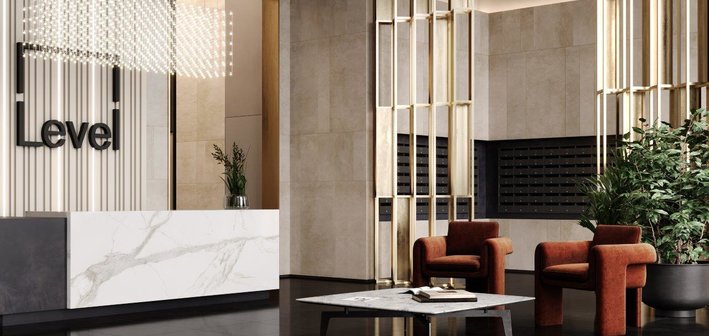 Level Group совместно со студией дизайна Balcon разработала проект интерьеров входных групп и типового этажа в домах Level Селигерская. Строгий стиль в сочетании с изысканными яркими элементами, а также современные высокотехнологичные решения гармонируют с лаконичными фасадами жилых домов.