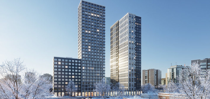 Камерность проекта обеспечивается за счет небольшого количества квартир и высотности зданий. Всего 2 корпуса переменной этажности: по 30 этажей в секциях 1 и 2 и 11 этажей в секции 3.