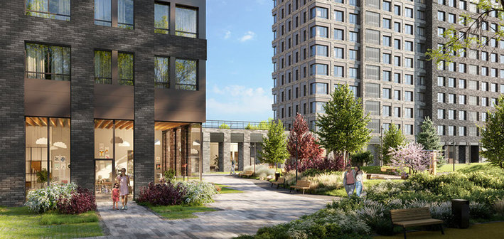 На первых этажах девелопер предусмотрел всё для комфортной жизни: кафе, пекарни, магазины, аптеки, салоны красоты и другие сервисные службы, а также собственный детский сад. Для жителей будет также доступен отапливаемый подземный паркинг, в который можно попасть, не выходя на улицу.