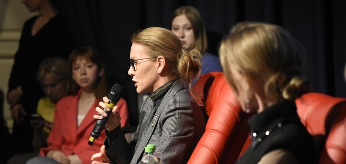 Перед гостями выступили первый заместитель генерального директора компании «Иннопрактика», президент сообщества ВЫЗОВ Наталья Попова и генеральный продюсер шоу «Вызов» на ТНТ Марина Артемьева.