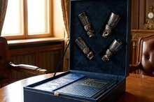 Набор ориентирован на любителей рыбалки и мужских увлечений, объединяя тематическое содержание и подарочное оформление. Центральным элементом выступает «Большая книга русской рыбалки», посвященная традициям и практике рыбной ловли. Издание выполнено в переплете ручной работы из натуральной кожи. Книга имеет крупный формат 250×312 мм и объем 360 страниц на русском языке. Подарочная упаковка представляет собой коробку с прошивкой, замком и ложементом. Используются материалы картон и эко-кожа armonia. Комплект воспринимается как тематический коллекционный подарок.