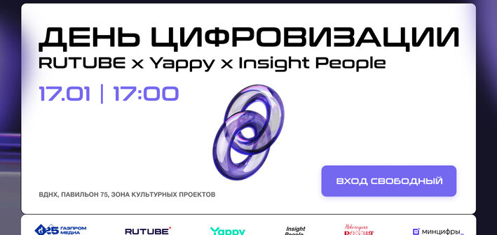 17 января в 17:00 в рамках Дня Цифровизации Минцифры России при поддержке компаний «Газпром-Медиа Холдинга» – платформы RUTUBE, приложения вертикальных видео Yappy и продюсерского центра «Инсайт Люди» – стартует развлекательная программа, в которой примут участие известные артисты и блогеры. Каждый желающий сможет стать участником всероссийской акции, организованной «Газпром-Медиа Холдингом» по всей стране: от Калининграда до Владивостока.