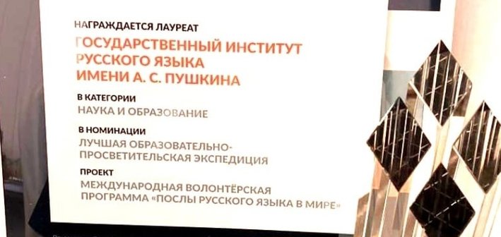 Это первая большая награда коллектива Гос. ИРЯ им. А.С. Пушкина, полученная им под руководством ректора Н. С. Трухановской. Институт является одним из флагманов популяризации русского языка в мире.