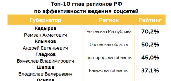 Губернаторы в соцсетях: кто вел их эффективнее всех