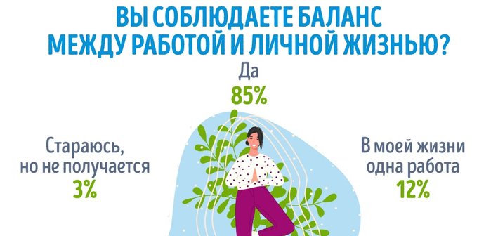 3% опрошенных ответили, что им трудно найти баланс между работой и личной жизнью ? пока гармоничного распределения не получается.