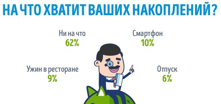 62% опрошенных ответили ? ничего, то есть у большинства участников опроса нет или практически нет никаких сбережений.