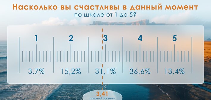 Результаты опроса показали: россиянки точно знают, что значит быть счастливой. 57,3% респонденток уверены, что главное для девушек – оставаться в гармонии с собой и миром. Высоко ценятся спокойствие, взаимная любовь и радость общения с друзьями и близкими. Чуть ниже – свобода, здоровье, а также красота и привлекательность.