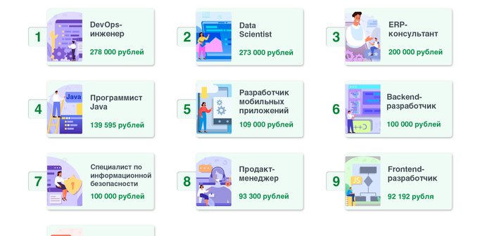 А в «Разработке» — у DevOps-инженера (278 тыс/руб), Data Scientist (273 тыс/руб), а также программиста Java (139 тыс/руб).