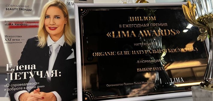 В рамках премии Натуральная косметика ORGANIC GURU получила награду в номинации «Выбор Года», завоевав за шесть месяцев сотни тысяч сердец и полок в ванных комнатах России.