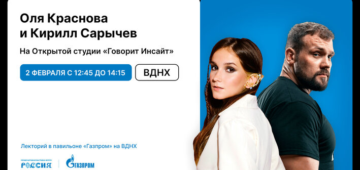 Открытая студия «Говорит Инсайт» пройдет на ВДНХ с участием Кирилла Сарычева и Оли Красновой