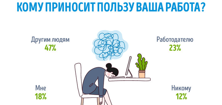 18% опрошенных думают, что работа полезна прежде всего им самим, а 12% уверены, что занимаются бесполезной, никому не нужной работой.
