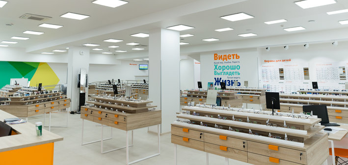 По ширине и глубине своего ассортимента флагман стал крупнейшим в нашей стране магазином оптических товаров, где на территории общей площадью свыше 875 кв. м представлено более шести тысяч моделей оправ и солнцезащитных очков (заметим, что речь идёт исключительно о новинках, а не о моделях прошлых лет), а также разнообразные аксессуары к ним, очковые и контактные линзы и средства по уходу за ними.