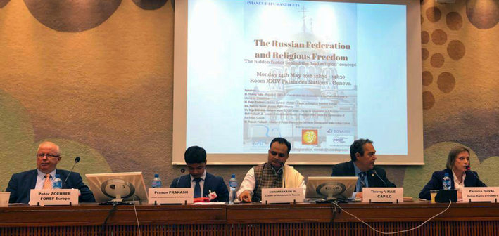 14 мая состоялся обзор ситуации в России. В заседании приняли участие Шри Пракаш Джи (Кумар Пракаш) – Духовный Учитель в традиции индуизма, президент российского Центра содействия сохранению и развитию индийской культуры «Шри Пракаш Дхам», проживающий в России и Прасун Пракаш – директор Центра «Шри Пракаш Дхам» по связям с общественностью и культурному развитию. Их доклады касались положения в России верующих - последователей индуизма, их преследований со стороны радикально настроенных элементов, причисляющих себя к Православию, под руководством некого А.Л. Дворкина.