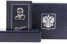 Набор стал популярным дипломатическим подарком. Книга в красном кожаном переплете украшена золотыми узорами и медальоном с Кремлем. Красный цвет символизирует благополучие и власть в китайской культуре. Дополняет комплект фотография в деревянной раме и лакированная шкатулка с бархатным ложементом. Такой набор подчеркивает международный статус дарителя.