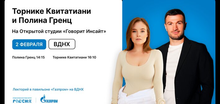 Резиденты продюсерского центра «Инсайт Люди», входящего в «Газпром-Медиа Холдинг» с ноября 2023 года, Торнике Квитатиани и Полина Гренц расскажут о своем пути к славе и закулисье блогосферы. Они дадут интервью в рамках Открытой студии «Говорит Инсайт» 2 февраля в Лектории павильона «Газпром» на ВДНХ в рамках выставки-форума «Россия». Полина Гренц выступит в 14:15, а Торнике Квитатиани — в 15:45.